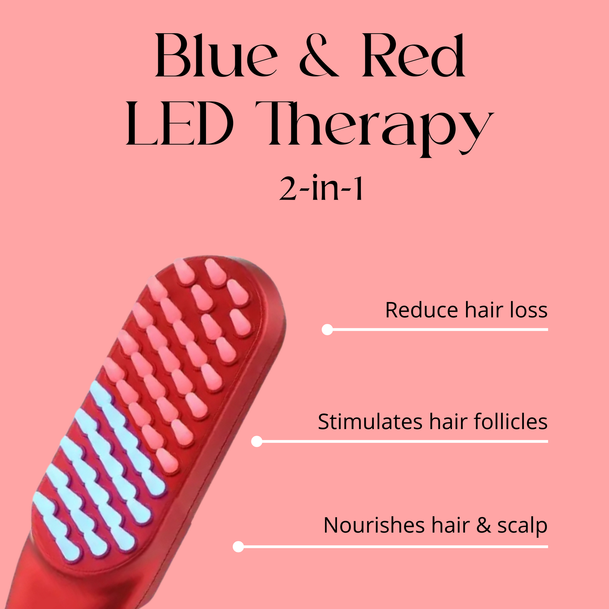 Introducing our revolutionary Red and Blue Light Therapy Vibrating Hairbrush, designed to rejuvenate your hair health like never before.